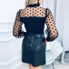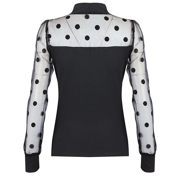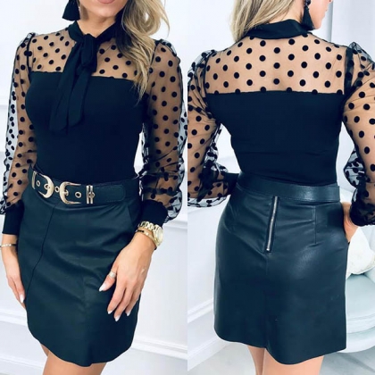 You can easily achieve for a sexy and flirty look when you wear this wonderful top. The dots gauze spliced design makes this piece look so alluring,while the lace-up bow-knot collar design will lend you a dash of sweet vibes. When matching with a high waist skirt or pants,you can look charming and beautiful enough!
