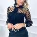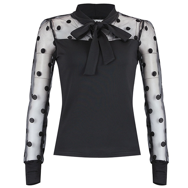 Sexy Dost Gauze Spliced Long Sleeve Bow-knot Collar Top