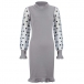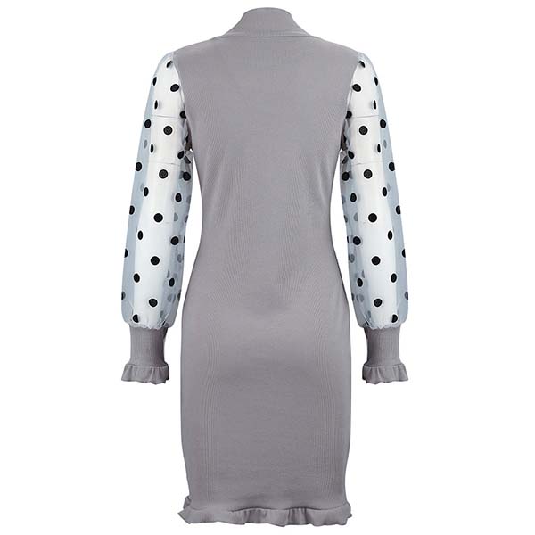 Sexy Dots Gauze Spliced Lantern Sleeve Mock Neck Slim Fit Dress