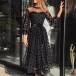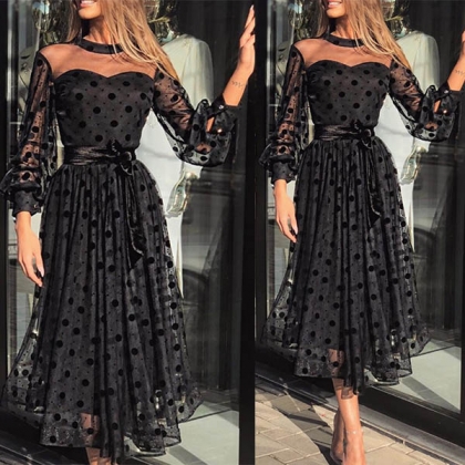 Sexy Dots Gauze Spliced Lantern Sleeve Round Neck Dress