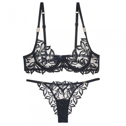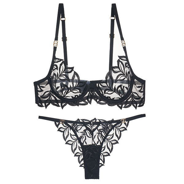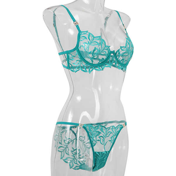 Sexiga underkläder med blommigt broderi i ett tvådelat set