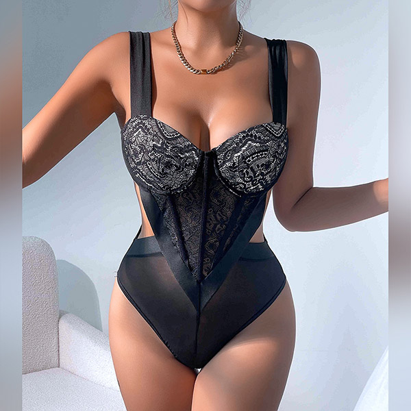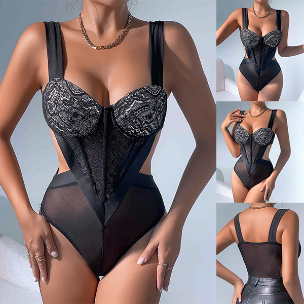 Detta plagg är förföriskt och lockande, med en kombination av delikat spets och en vågad design. Den blommiga spetsen ger en romantisk och feminin touch. Den söta urringningen framhäver din dekolletage och ger en fängslande detalj till din outfit. Du kan kombinera bodyn med byxor med hög midja eller en kjol för en snygg och sexig look.
