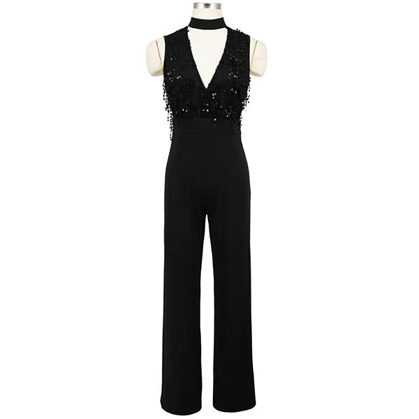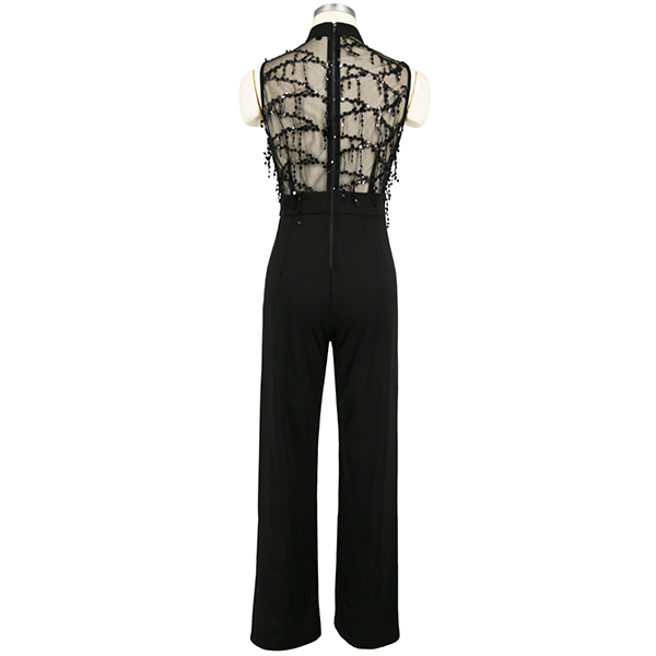 Sexy Gauze Sequin Spliced Sleeveless V-neck High Waist Jumpsuit
