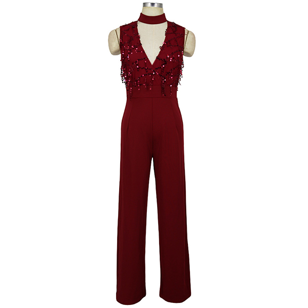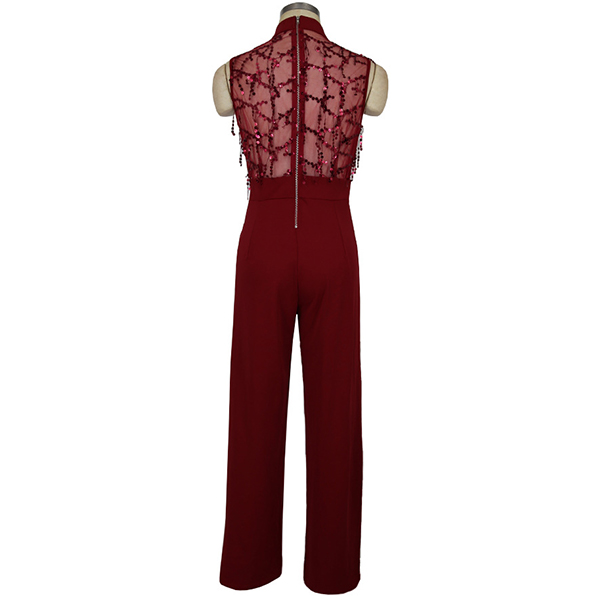 You deserve to win more eyes when you don this delicate jumpsuit! Its alluring design details like deep v-neck,gauze and sequin spliced details make this piece look so sexy and flirty,while the high waist and fit silhouette design can illuminate your slender figure. Save this wonderful piece for your fancy events.