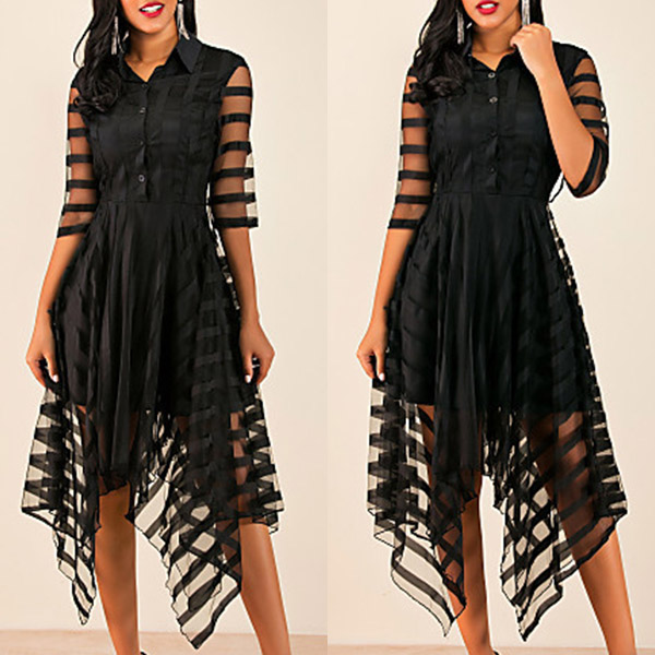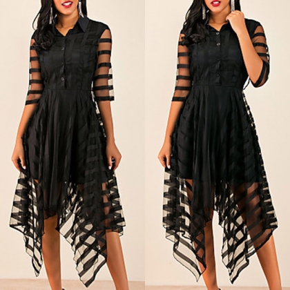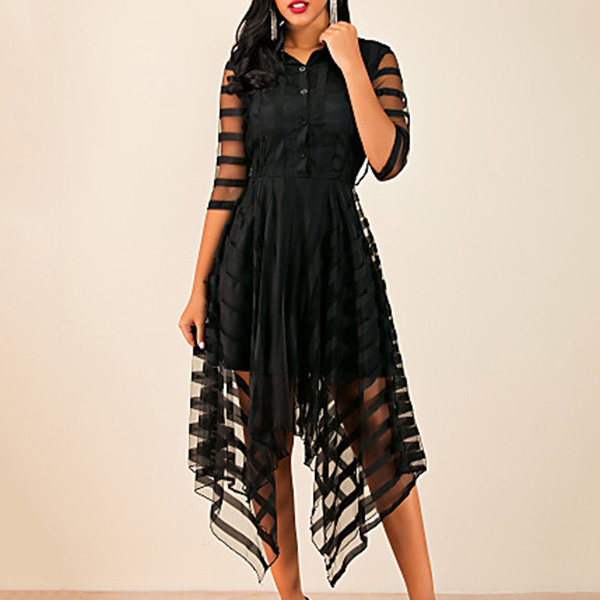 Sexy Gauze Spliced 3/4 Sleeve Irregular Hem Dress