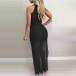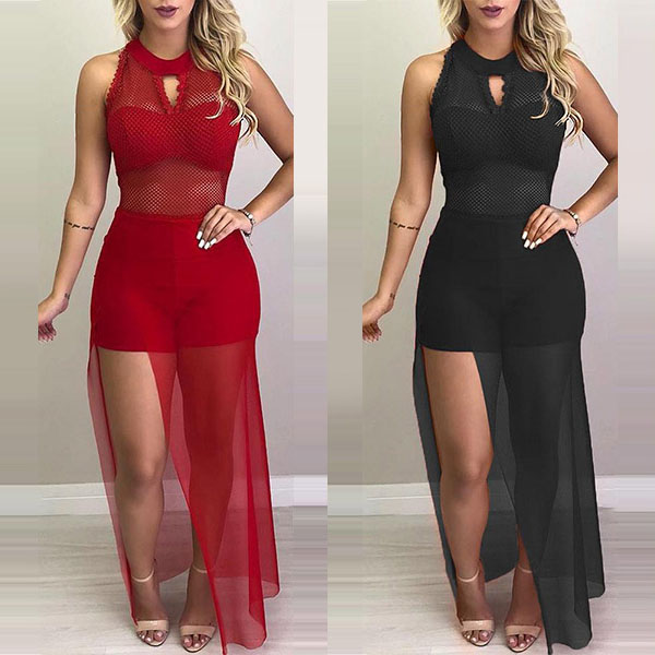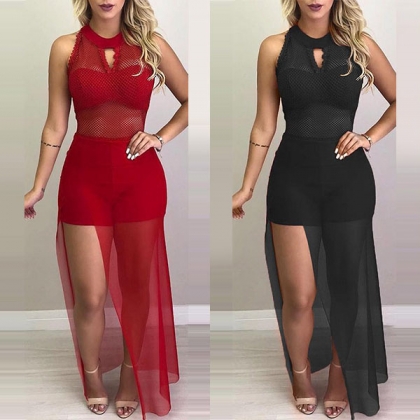 Sexy Gauze Spliced Hem Sleeveless Round Neck Slim Fit Romper