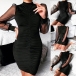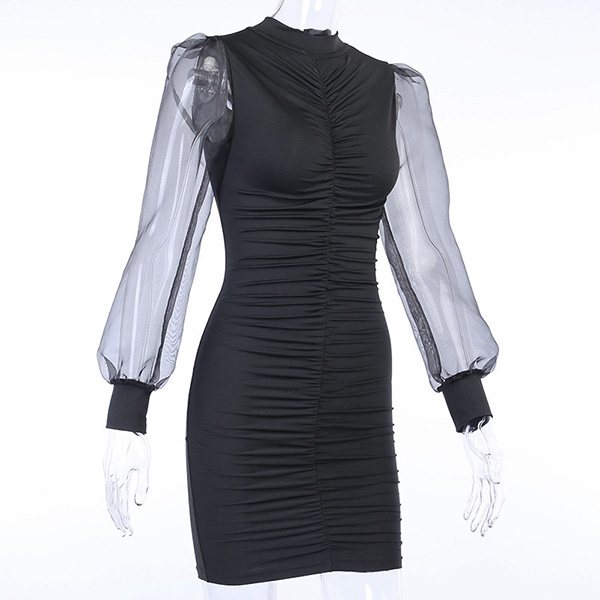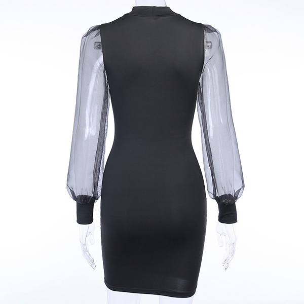 Sexy Gauze Spliced Long Sleeve Mock Neck Slim Fit Dress