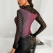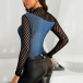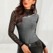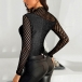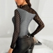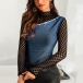 Sexy Gauze Spliced Long Sleeve Mock Neck Slim Fit T-shirt