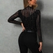 Sexy Gauze Spliced Long Sleeve Mock Neck Slim Fit Top
