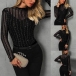 Achieve for a sexy and flirty look with this wonderful top. Gauze spliced design is the highlight,which makes this piece look so sexy. Finished with long sleeve,mock neck and a fit silhouette design,this piece also can showcase your perfect body-line. Try to match with your favourite bottom to finish a charming look.