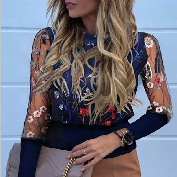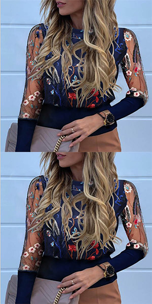 No need a second glance,you would be attracted by this chic and sexy top. The gauze spliced long sleeve design makes this piece look so sexy and flirty,while the embroidered details will make this piece look more beautiful and attractive. It is an easy thing to create a sassy and charming look with the help of this top.