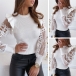 Sexy Gauze Spliced Long Sleeve Round Neck Knit Top
