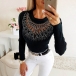 Your wardrobe can have an update when you take interest in this top. The gauze spliced and rhinestone details make this piece look so sexy,alluring and shinning. Finished with long sleeve,round neck and a fit silhouette,this wonderful piece knows how to exude your style. Perfect fit for matching with different style bottoms.