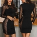 Sexy Gauze Spliced Long Sleeve Round Neck Slim Fit Dress