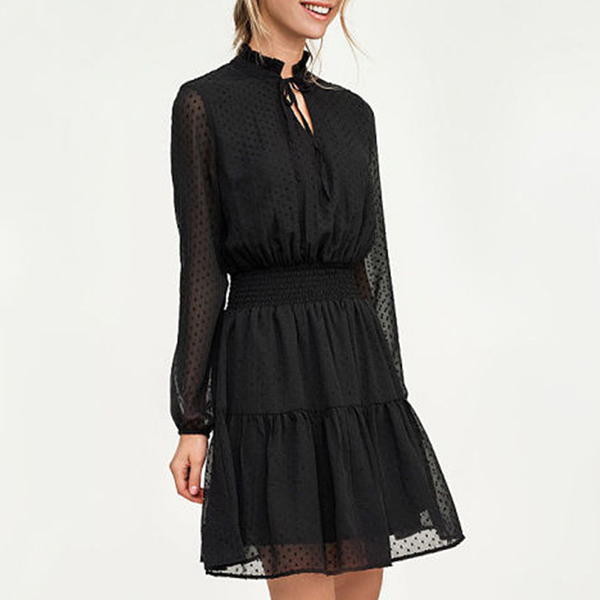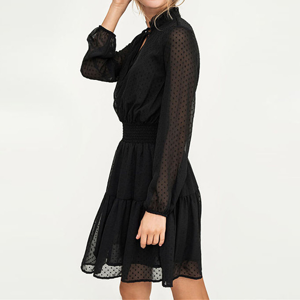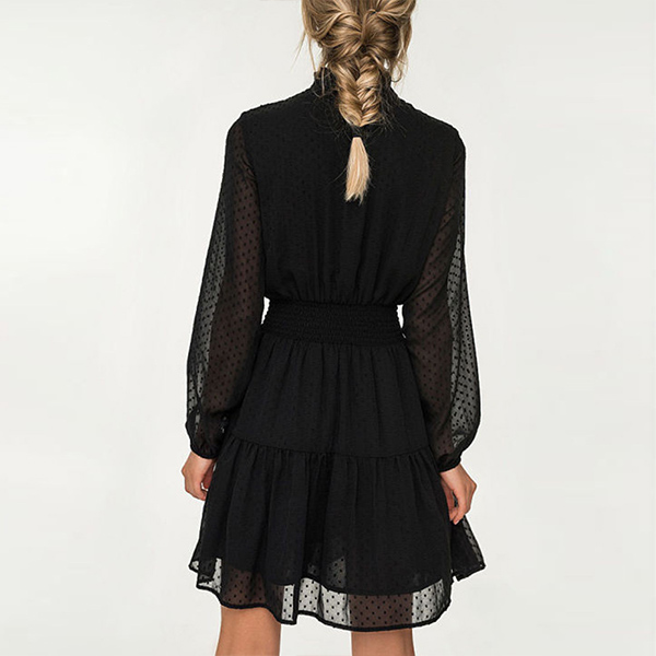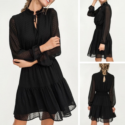 Modestly stylish,while still maintaining its alluring feminine appeal, that's why we love this dress! The gauze spliced long sleeve and ruffle stand collar design make this piece look so attractive,while the lace-up design at the neckline part can lend you a dash of sexy vibes. From your daytime out to night dating,this dress can give you a perfect transition.