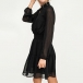 Sexy Gauze Spliced Long Sleeve Ruffle Stand Collar Dress