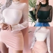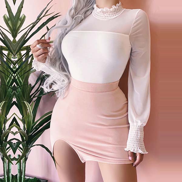 Add a dash of sexy and flirty vibes to your look with this wonderful top. Solid color style,the gauze spliced and ruffle stand collar design make this piece look so sexy and attractive. No matter matching with a shorts,skirt or jeans,you can look charming enough!