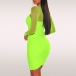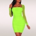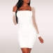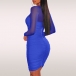 Sexy Gauze Spliced Long Sleeve Square Collar Slim Fit Dress