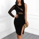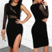 Sexy Gauze Spliced One-sleeve Slit Hem Slim Fit Dress