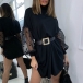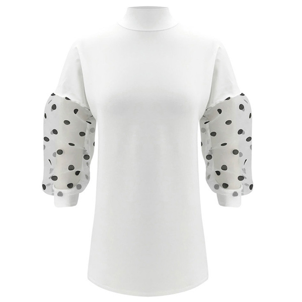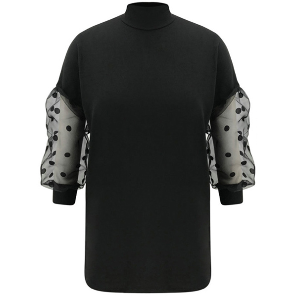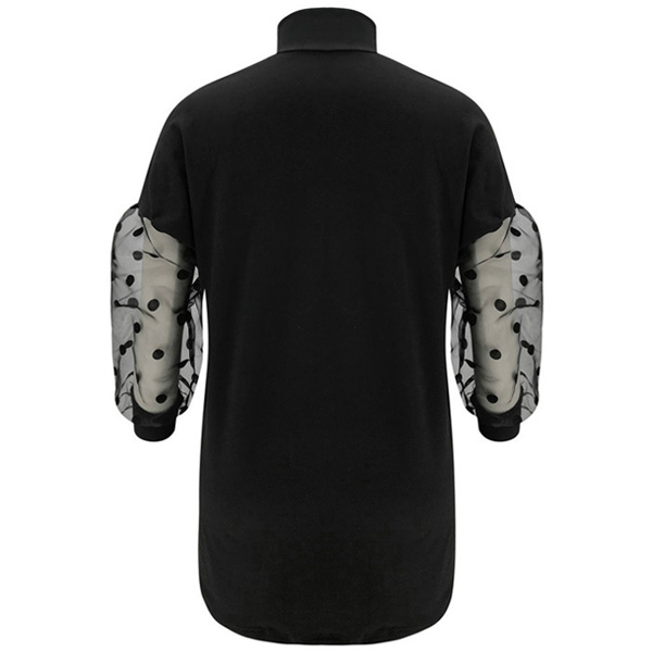 Sexy Gauze Spliced Puff Sleeve High Collar Dress