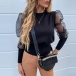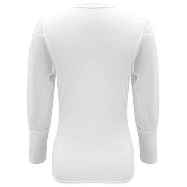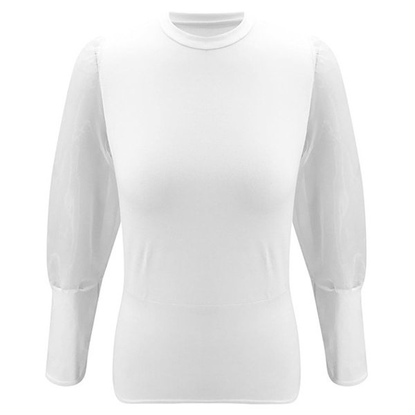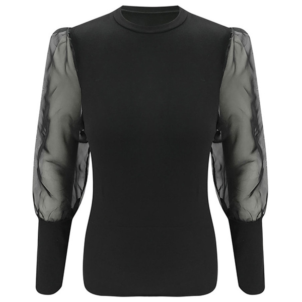 This top that exudes cozy,sexy and flirty vibes can help you win more eyes. The gauze spliced puff sleeve design is the highlight,which makes this piece look so attractive. If you like this piece,then you can invite this piece to your wardrobe.