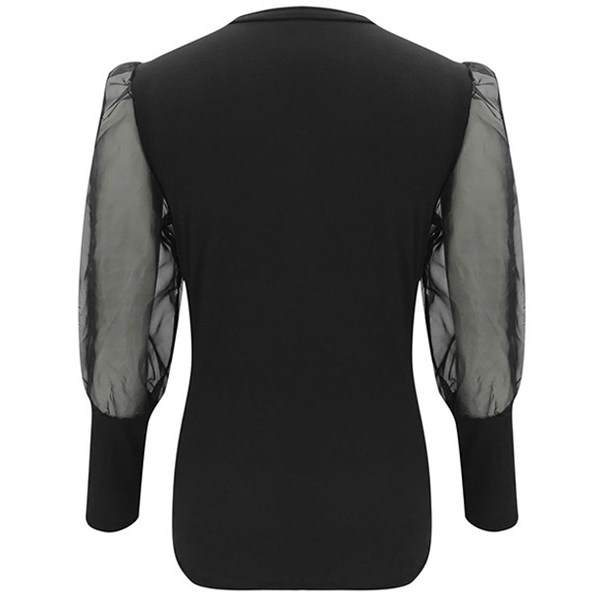 Sexy Gauze Spliced Puff Sleeve Round Neck Solid Color Top