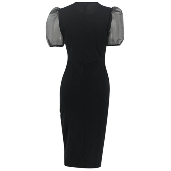 You have no need to worry about what to wear for tonight's cocktail party if you have this dress in your team. The gauze spliced puff sleeve and slit hem design can enhance your femininity,while the fit silhouette design will demonstrate your slender figure. When you wear this dress,you can easily arouse more attention.