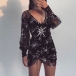 You can look extra stunning when slipping into this sequin dress. Its alluring design details like see-through gauze spliced,deep v-neck,irregular hem and puff sleeve design make this piece full of charm and style. Save one for your night events.