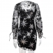 Sexy Gauze Spliced Puff Sleeve V-neck Irregular Hem Sequin Dress