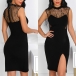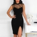 Sexy Gauze Spliced Sleeveless Round Neck Slit Hem Slim Fit Dress