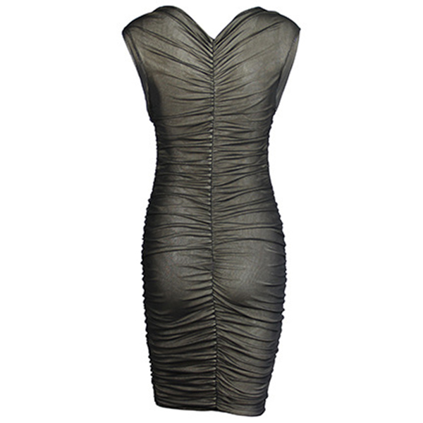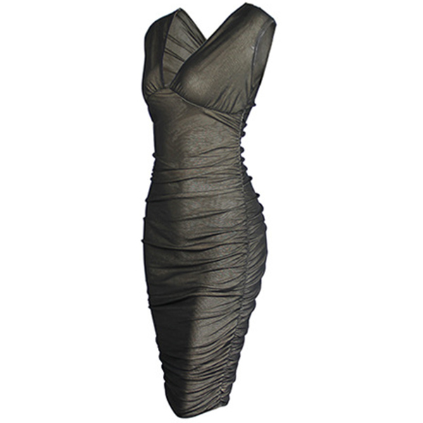 Sexy Gauze Spliced Sleeveless V-neck Slim Fit Dress
