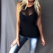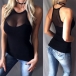 Thanks to the flattering black tone and fit silhouette design,this top can better highlight your perfect body-line. Moreover,the gauze spliced design will lend you a dash of sexy and flirty vibes. For these summer days,this cozy yet feminine top can be your wise choice.