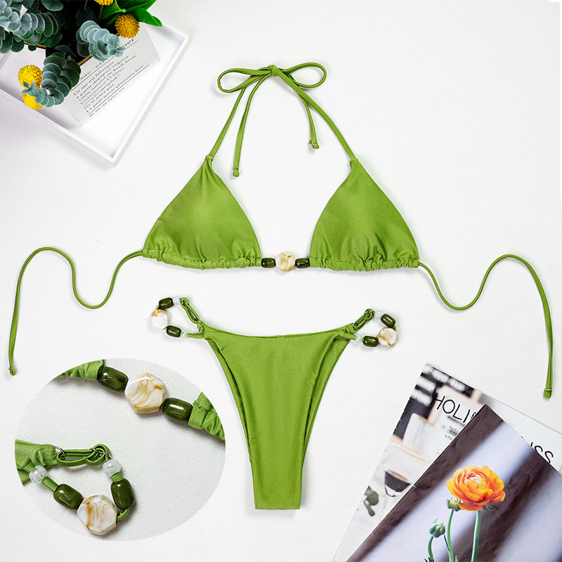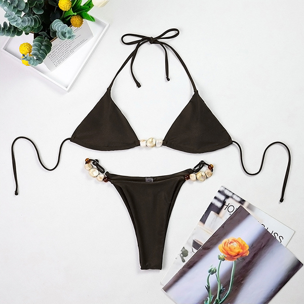 Bikini i halterneck med dekorativa stenpärlor – sexig strandlook