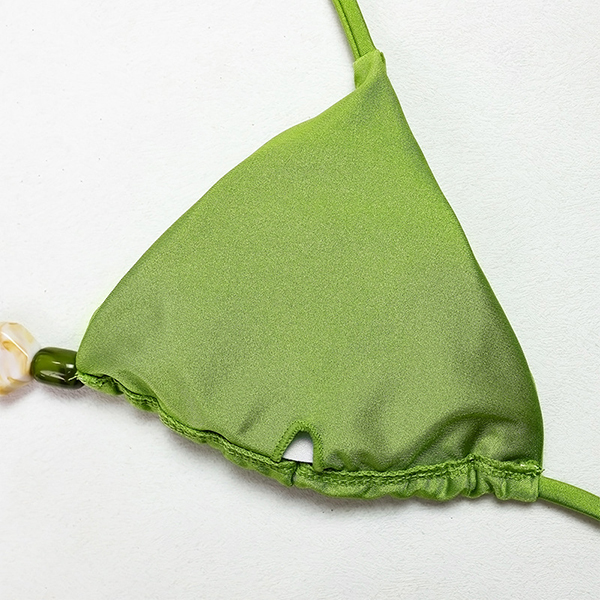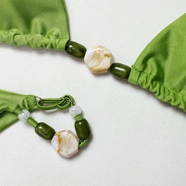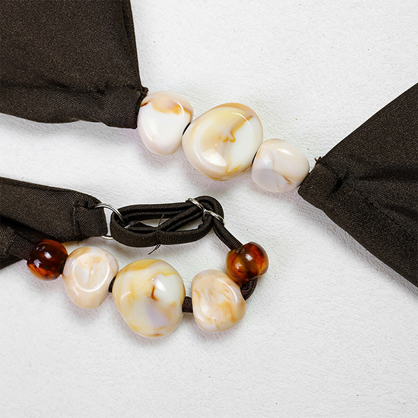 Omfamna en jordnära, bohemisk känsla med detta bikiniset med stenpärlor. Detta tvådelade set är designat för dig som älskar naturliga toner och unika texturer och kombinerar en smickrande, klassisk skärning med hantverksmässiga detaljer. Vill du prova?