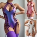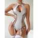 Sensuellt underklädesset med halterneck, snörning fram, utskurna sidopaneler, ryggfri design och medföljande strumpor