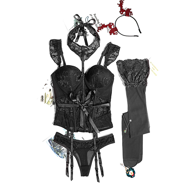 Sexig Spetshalterneck Tvådelat Korsettset med Strumpor