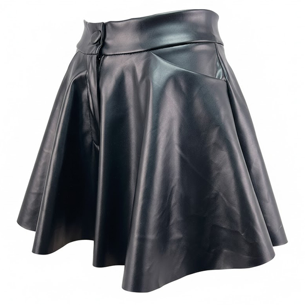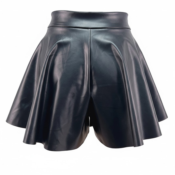 Sexig högmidjad minikjol i PU-konstläder med volang