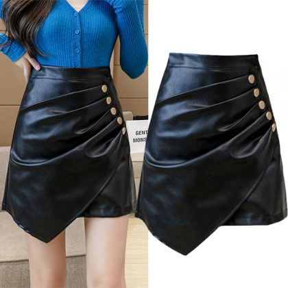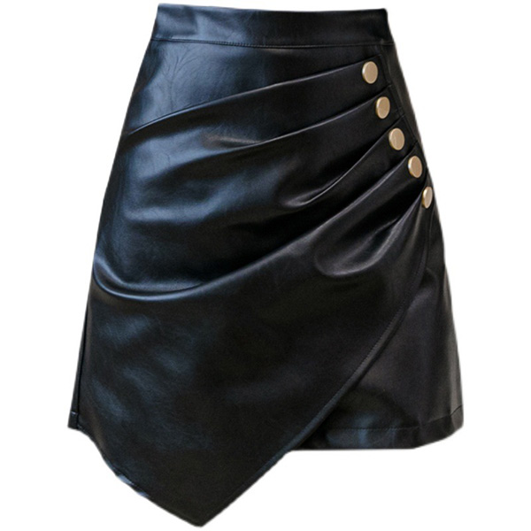It is a good chance to showcase your seductive hips and slender legs through this PU leather skirt. Solid color style,the irregular hem and front button details break the simple and dull design style. When matching with a crop top,you can look sexy and charming enough!