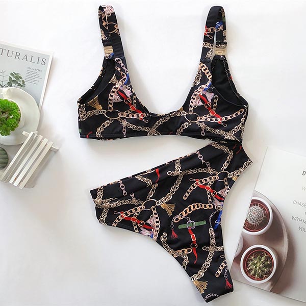 When the summer season hits,this bikini set would be your perfect partner for your beach days and tropical getaways. Features chic printed details,including a backless bikini top and a high waist bikini bottom,this bikini set can showcase your seductive curve and charming skin.