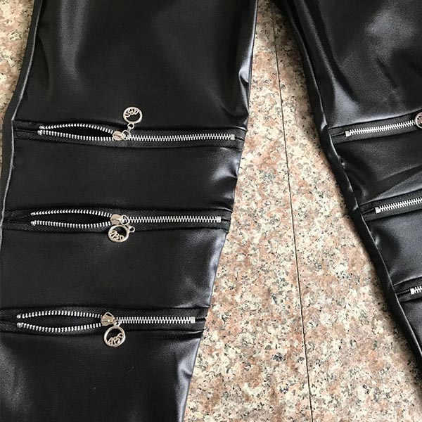 Dessa PU-läderbyxor framhäver dina charmiga och smala ben. Dragkedjans detaljer gör dem attraktiva och unika. Matcha dem med en crop top för en sexig och charmig look.