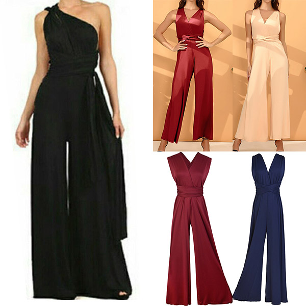When you have this wonderful jumpsuit in your team,you can trust in it to give you different wearing styles. Comes with a solid color,the high waist and wide-leg silhouette design can showcase your slender figure. Meanwhile,it can offer you different wearing styles like one-shoulder style,halter style,deep v-neck style and so on. So why not save this piece for your fancy events?
