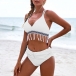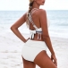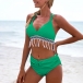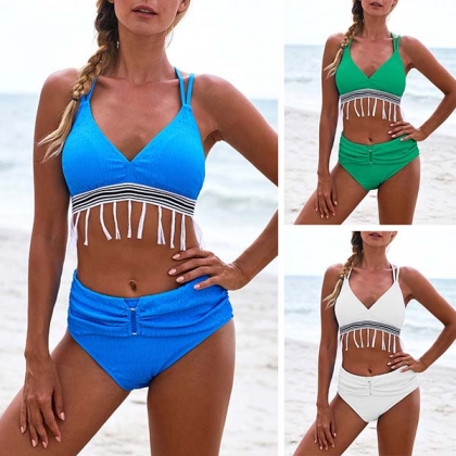 Lying on the beach with this bikini set to enjoy the sunbath! This bikini set consists of a backless tassel bikini top and a high waist bikini bottom,which can flaunt off your perfect curve and charming skin.