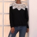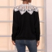Sexy Hollow Out Lace Spliced Long Sleeve Round Neck Top