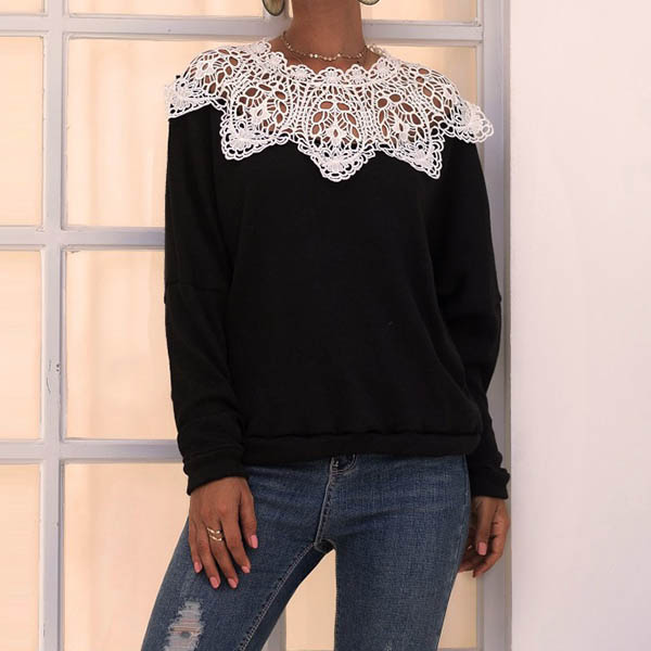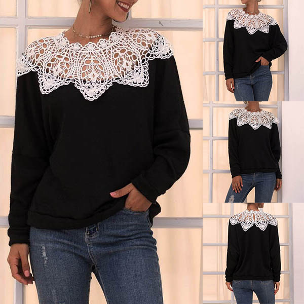 Combines of cozy and feminine vibes,this top is worth to have a place in your wardrobe. The hollow out lace spliced design will boost its charm,while the soft and breathable fabric can offer you a comfortable day. Attracted by this style? Then buy one!