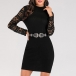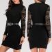 Sexy Hollow Out Lace Spliced Long Sleeve Slim Fit Knit Dress