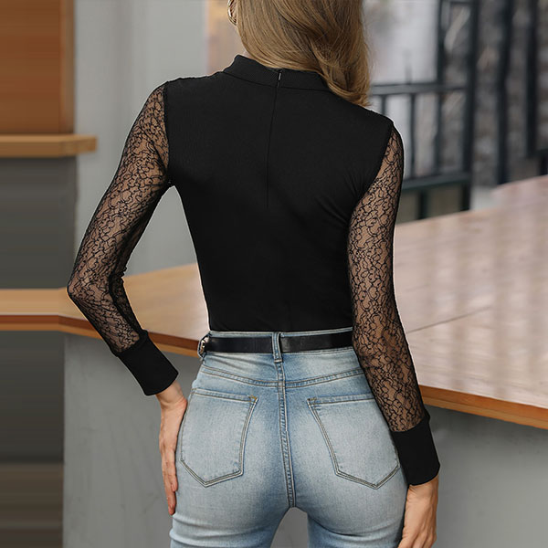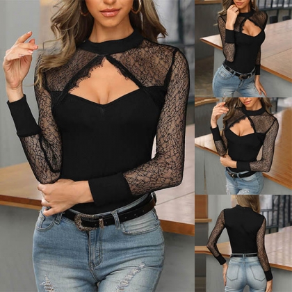 Enhancing your feminine appeal is an easy thing if you dress yourself up with this top. The hollow out design and lace spliced details will make this piece look sexier,while the fit silhouette design can showcase your perfect body-line. Perfect fit for matching with different style bottoms.