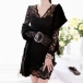 Sexy Hollow Out Lace Spliced Long Sleeve V-neck Slim Fit Dress