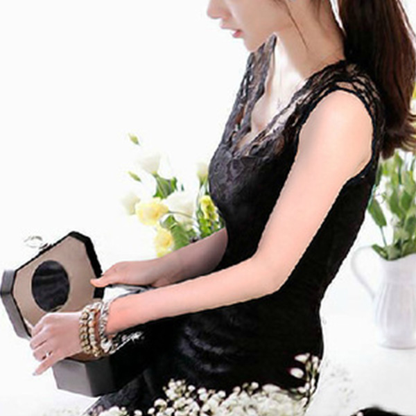 When you have this dress in your team, you have no need to worry about what to wear for your dinner date and cocktail parties. The v-neck and hollow out lace spliced design make this piece look so sexy and alluring,while the fit silhouette design can showcase your slender figure. When you wanna express your beauty and femininity,you can just slip into this dress!