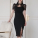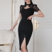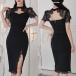 When invited to a dinner date or weekend gathering,you can trust in this two-piece set to arouse a splash. The hollow out lace spliced details and slit hem design make it look so sexy and alluring. Including a short sleeve top and a high waist skirt,this two-piece set definitely can portray your charming and feminine image.