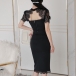 Sexy Hollow Out Lace Spliced Short Sleeve Top + Slit Hem Skirt Two-piece Set